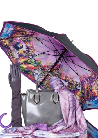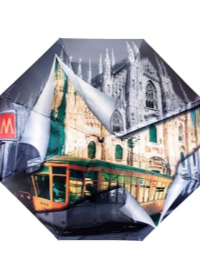 Lightweight umbrellas depicting cities, paintings by famous artists, landscapes or moments from movies look very original. With this accessory fashionista will never be left without attention. But it is worth remembering that an unusual model should be combined with clothing.