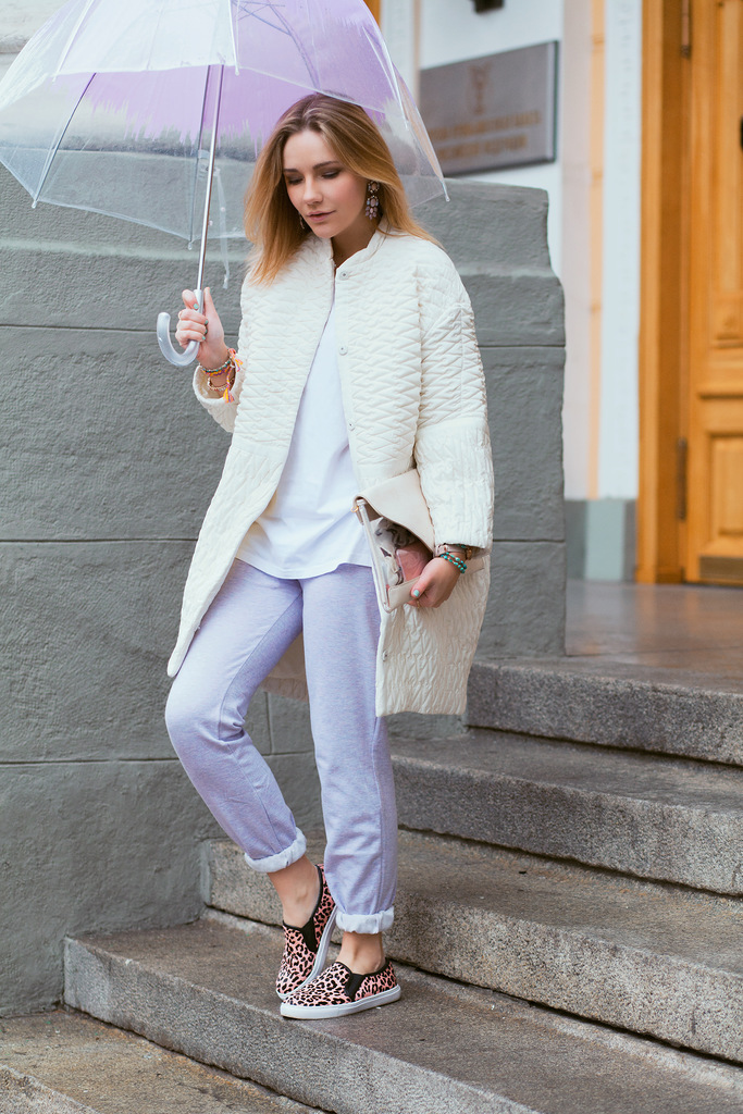 It is worth noting one drawback of the umbrella - the cane: it is not very comfortable while wearing, so you don’t take a long walk with such a thing.