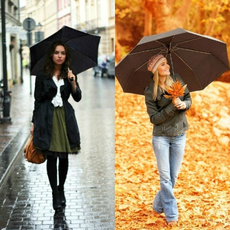 Folding copies rightfully recognized as one of the most practical and convenient. They can be easily hidden in a handbag and always carry with you. The weather in our country is very changeable, so this accessory does not hurt you at all.