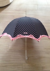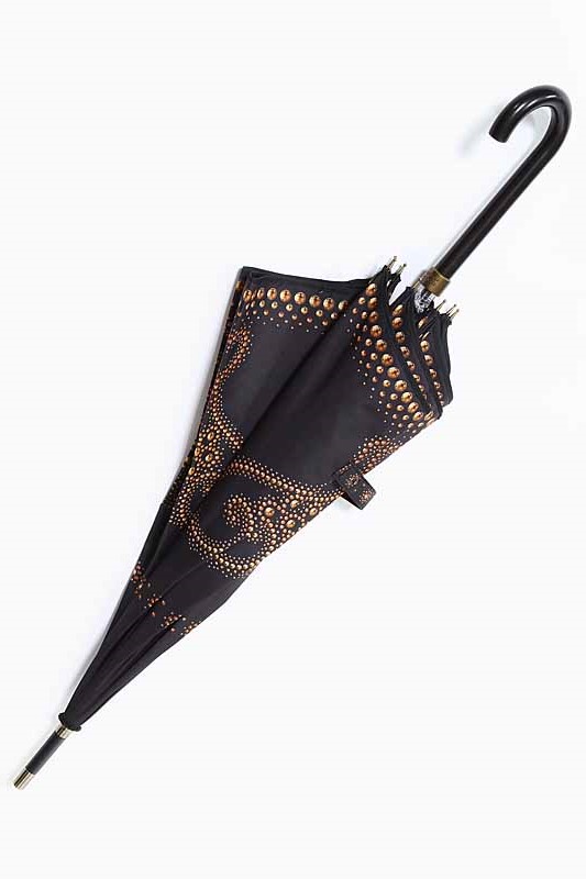 This umbrella will decorate and evening out. Its highlight is the metal hardware of golden color. It can make original patterns or be a simple edging of the product.