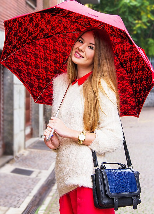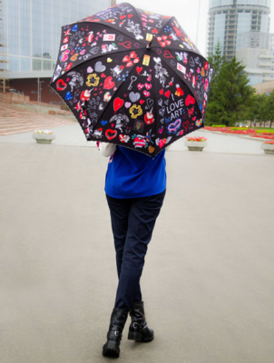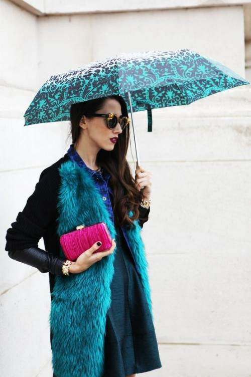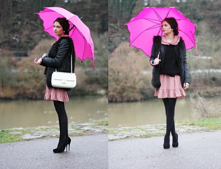 Despite the bad weather, an umbrella with an unusual design can be an ornament to any outfit.