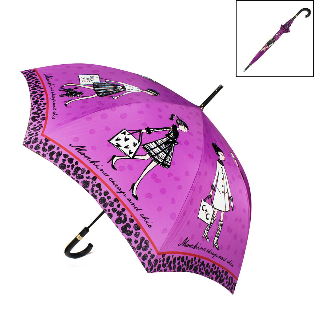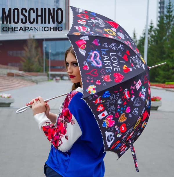 In rainy weather can not do without an umbrella. He can reliably shelter from bad weather and cheer up. Well, if this model is functional and aesthetic, making the image spectacular. Moschino umbrella is such an accessory.