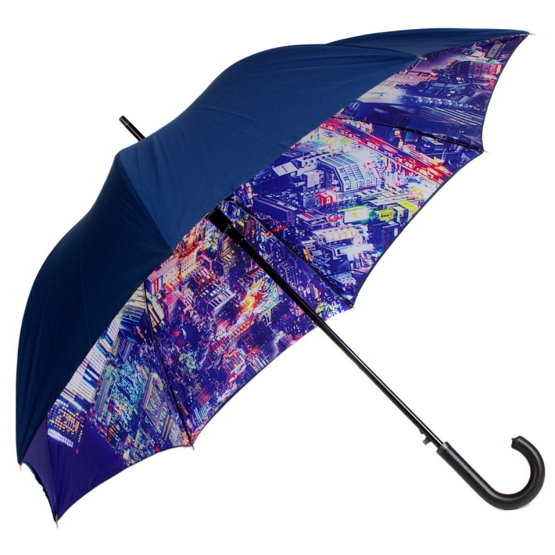 The dome of this umbrella is more rounded than the folding options. It is more reliable and less prone to breakage, since its core has no component parts. The product is opened by pressing the button, and closed manually.