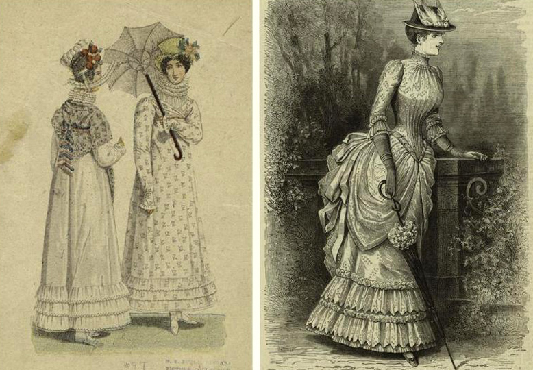 Such a flirtatious accessory was in the arsenal of every woman of fashion in the distant 18th century. In those days, ladies dressed in large multi-tiered skirts or openwork dresses were not able to stay in the open sun. They used all possible methods to protect themselves from the heat. For this, fans and light umbrellas were used.