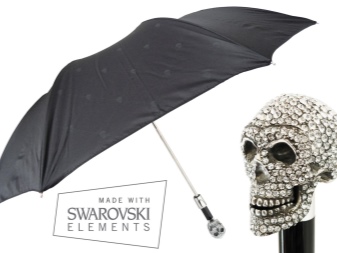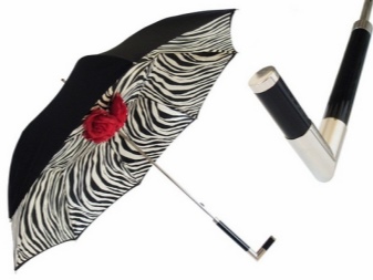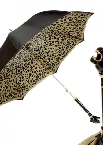 Bone handles also look very stylish. They can be tall and are always performed in the same tone as the dome colors. Such umbrellas are popular no less than models with sparkling stones. Some styles of handles are decorated with natural leather.