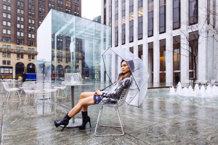 The original transparent umbrella appeared in the 70s of the XX century thanks to the Frenchwoman Madame Courage. The product has become very popular and is still a popular accessory in the wardrobe of many modern fashionistas.