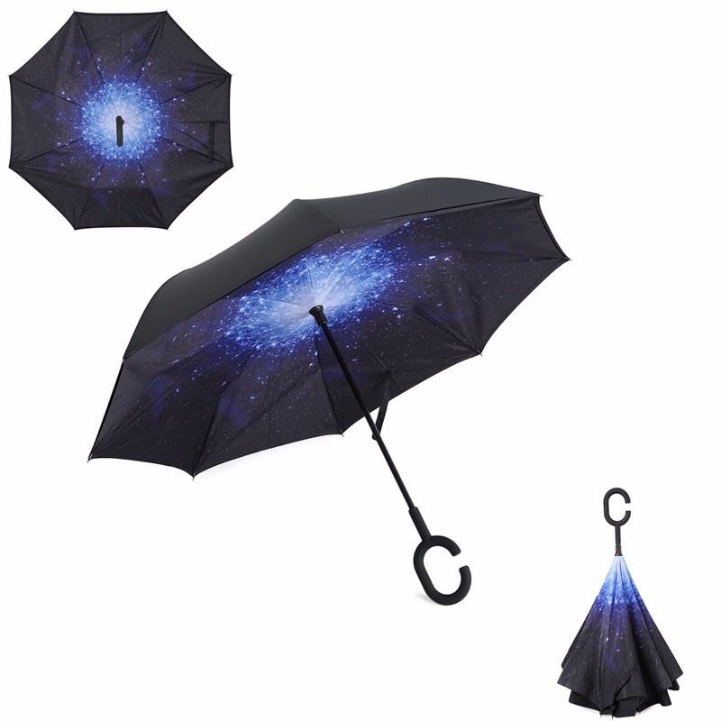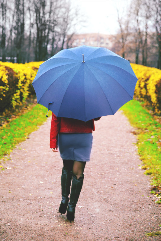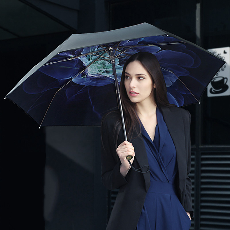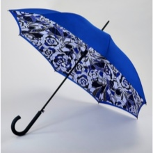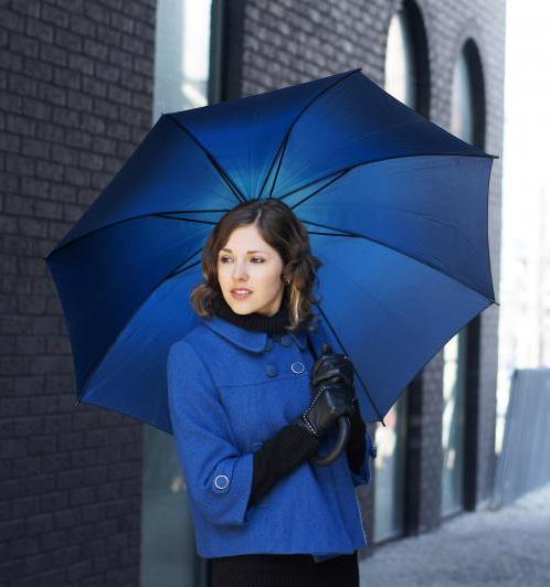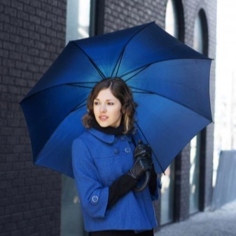 Judging by the type and type of umbrella, it can be divided into canes and folding. A dark blue umbrella-cane is perfect for girls of high stature, besides, it is more rigid and will not be torn out of hands at the first strong gust of wind. Such models rarely break and will last for a long time.