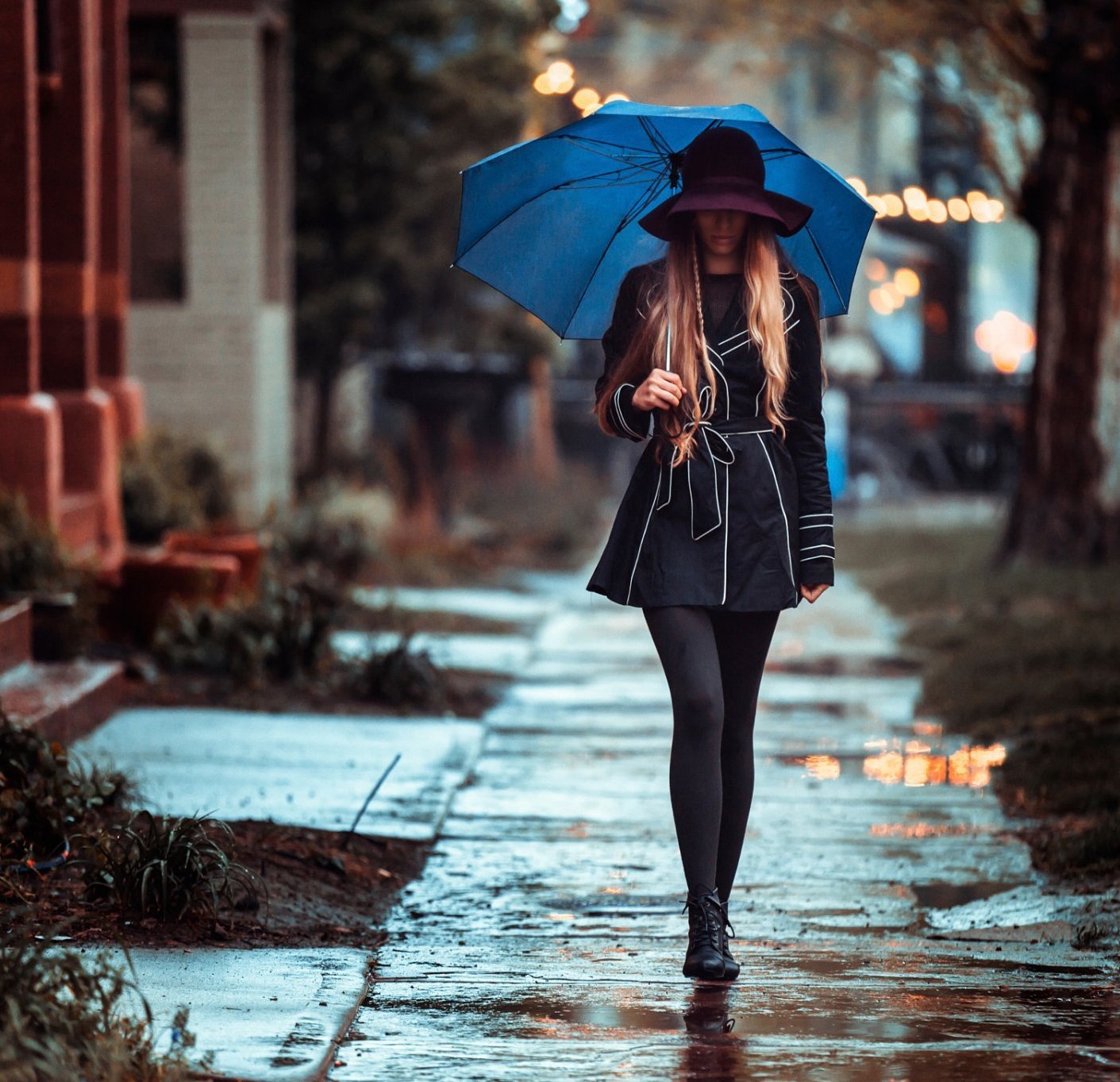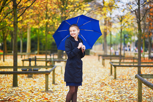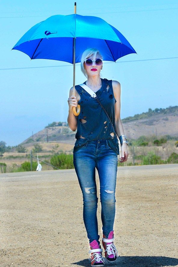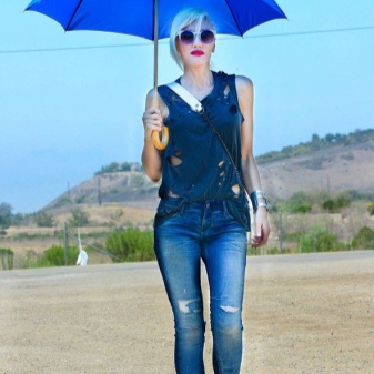 Blue umbrella is an unusual and extravagant solution for those who do not like boredom and dullness. Performing its main function, it will also emphasize your image and complement it.