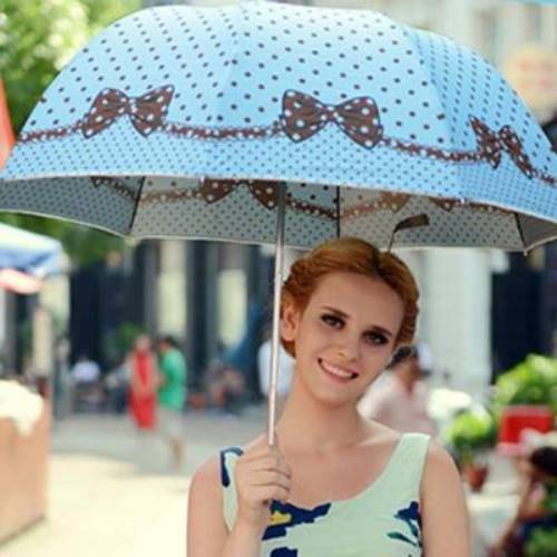 From the scorching sun and heat can perfectly protect the bright summer umbrellas. Such models, as a rule, are lacy and cannot be worn in the rain. One of the most fashionable and delicate shades today is light blue. He will instantly wrap you in soft romance and give the bow femininity and lightness. Light blue umbrellas are perfect for a date on a hot day, as well as for interesting photo shoots.