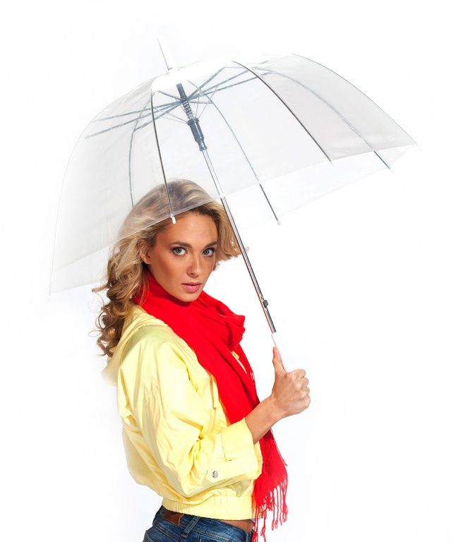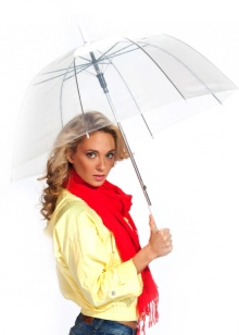 Ladies in choosing such umbrellas should take into account their height. Low women should not buy models with a very wide dome, which will further "reduce" the growth of the hostess. A good option in this case would be a transparent product or a deep version of a light color.