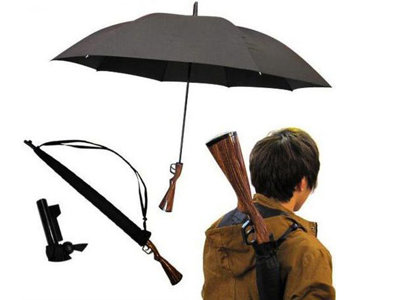 A real masterpiece can be called an umbrella gun.Of course, such a weapon will not shoot, but this accessory of a real man looks quite impressive and original. This is the only case where a serious weapon is transformed into a rain-canopy with a flick of the wrist.