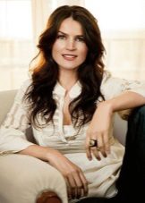 Charming Julia easily and monotonous ensembles. Even if it is not about a win-win “total black”, the luxurious brown-haired woman shows a high style. In the photo below, the actress is dressed in an elegant floor-length dress, illustrating another very important rule: if you want to demonstrate a deep cleavage - please, but the rest of the outfit should be as modest as possible. The sleeve here is shortened, wide, but if the shoulders are closed, we can assume that the cherished rule is observed. The decorative elements here are also at a minimum, only a thin belt with a bow, emphasizing the chest. Clutch to match dress. Another important detail - natural makeup and the lack of a bright manicure.