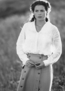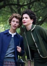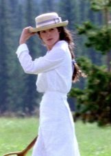The third outfit is a dress that is very similar to the previous one, but it looks completely different. There is one sleeve, there are no decorative elements. Please note that only the modesty and minimalism of this dress allow the actress to wear more open and original shoes. In other outfits of Julia Ormond, where there are bright elements, shoes are always the most closed and simple.