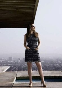 Motley decisions are also on the hand of the actress - such prints on the fabric of the dress only emphasize the virtues of her feminine figure. A contrasting black and silver components of this image makes it boring.