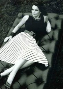 The elegance of Julia Ormond is the envy of any young fashionista. After all, the actress with the same grace wears both trouser outfits and such luxurious dresses. The combination of rich cream and black lace this season will be very appropriate for any celebration. And such a dress, which Julia once demonstrated at the presentation of the prestigious film award, will decorate any fashionable woman who is committed to the romantic style. The fishtail hem, floor length, open shoulders are all timeless trends for the coming spring / summer season.