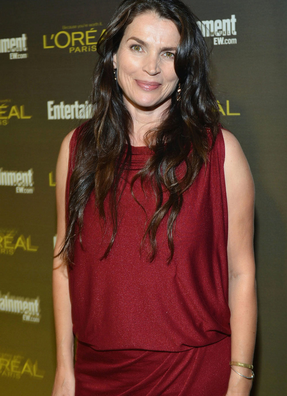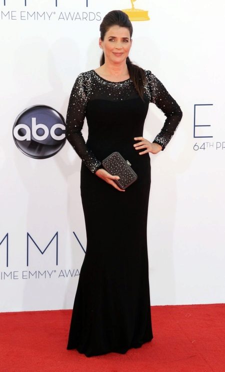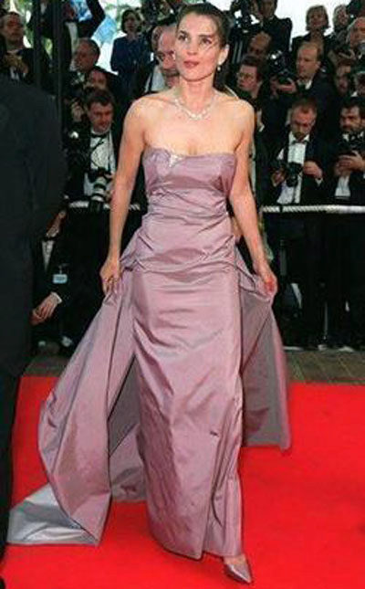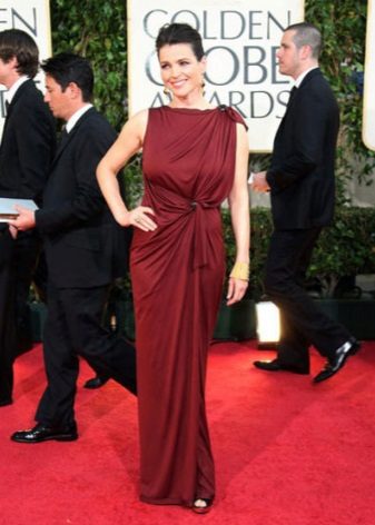 Another dress in which Julia Ormond resembles a mermaid from some fabulous sea country.This image is firmly back in fashion, so that it can be safely taken into service. The rich fuchsia of the dress is adjacent to the gold clutch and a stylish bracelet. The perfect evening dress option for all owners of magnificent feminine forms.