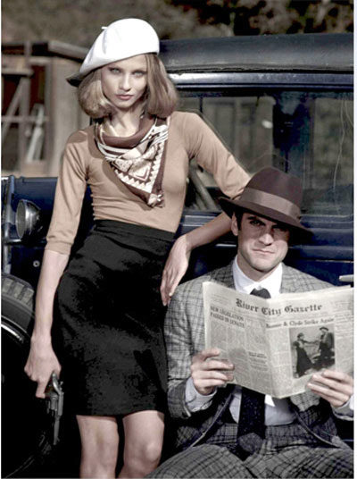 After the release of the film "Bonnie and Clyde" on the screens, Fay Dunaway unwittingly popularized the image she embodied on the screen. Smooth bob-neck, neckerchief and beret, shifted to one side, became the main trends of the whole decade. Many designers began to introduce such attributes in their collections, photographers conducted photo shoots in the style of Bonnie and Clyde specifically for publications in fashionable glossy magazines. Even today, such photo sessions are in great demand.