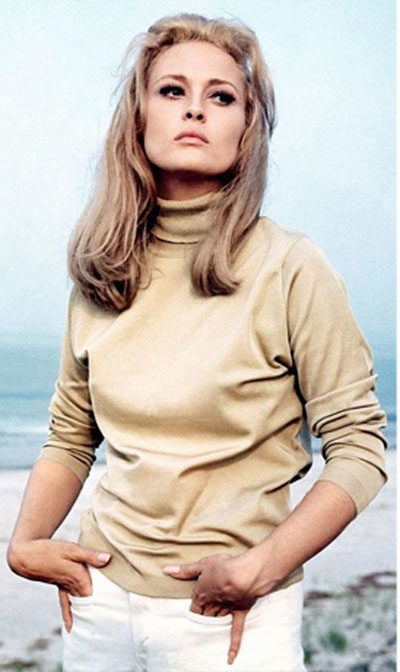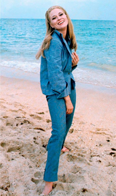 If you analyze the style that the actress showed in her youth, especially at the peak of her film career (1970-1980), you can find there many sets or individual elements that are relevant today. For example, these are casual style images, embodied with the help of white chinos and sand-colored turtlenecks, or a denim suit - pants with a slightly flared cut and a jumper. Such sunglasses will look very original and appropriate.