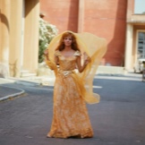 A very actual image today is wide-brimmed hat, translucent fabrics, geometric patterns. Luxury outfit for a real lady, it will be appropriate at any social event.