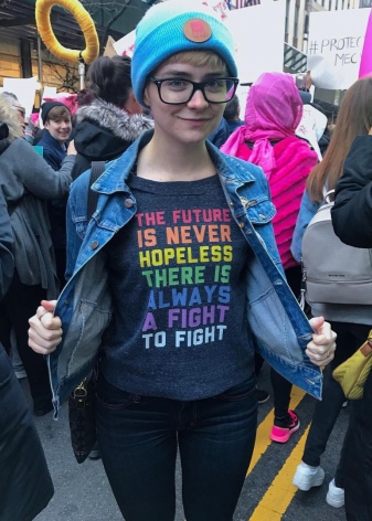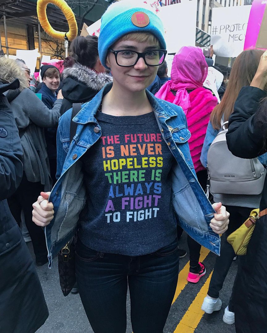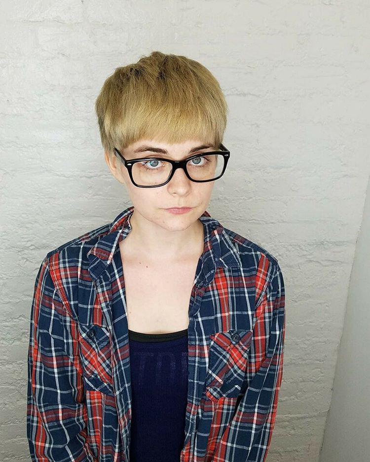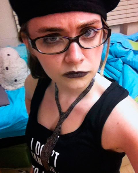But as soon as the girl devoted herself to a genuinely beloved work, then she looked much more natural and confident. As befits a typical Nerdu, Morgan York prefers the simplest style of casual clothing: jeans, shirts and sweaters, coarse boots, knitted hats. An important part of the image of Morgan is thick horn-rimmed glasses.