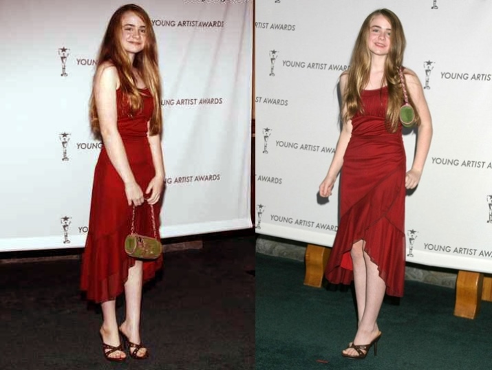 Morgan complements this image very moderately: a modest string of beads on the neck, on the arm - the same as the previous one, a bracelet. The actress chose silver ballet flats as shoes. Everything is very simple and very “grown-up”. Any young fashionista can safely adopt this image for any celebration.