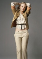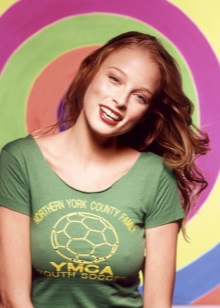 A good example of a combination of denim pants and ballet shoes Rachel demonstrates in the following photo. A matching t-shirt refreshes the entire image.