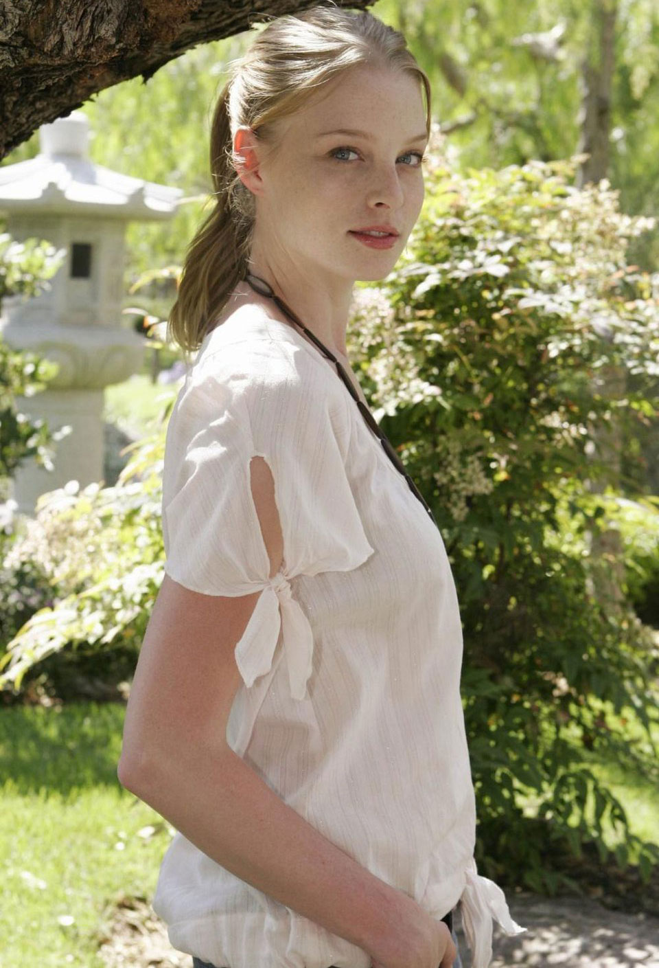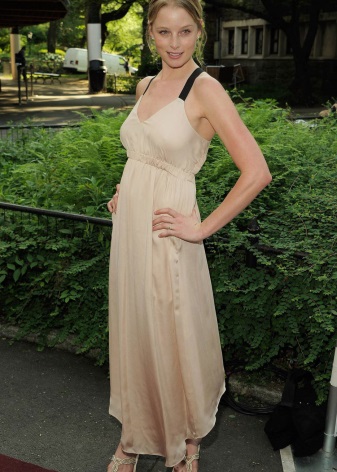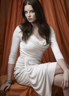 And from such a spectacular image, we finally turn to a review of even more charming outfits Rachel Nichols. The first of them - in the spirit of the Greek goddess.The pale-skinned blonde Nichols in this dress of vanilla color becomes almost transparent, as if radiating inner radiance. That and look, now soar and go home to Olympus. Open flat sandals are very well chosen here. But the lack of jewelry - a dangerous mistake. Put on Rachel a graceful silver tiara in the form of a wreath and long threads of earrings - and the image could claim to be impeccable.