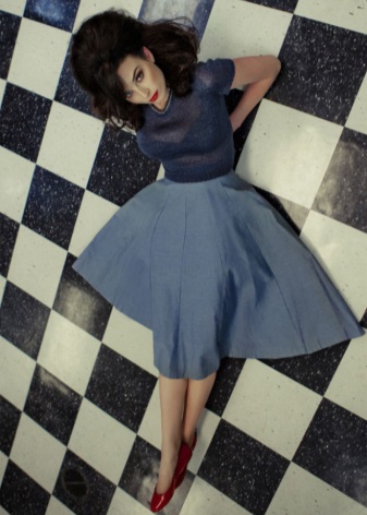 The perfect outfit for a luxurious blonde - dress above the knee in pastel colors. The incredibly beautiful finish of the material from which this model is made is the brilliance and splendor of Hollywood. Graceful shoes are also decorated with stones, so this duet is simply perfectly composed both in color and in decor. Such a simple-looking dress from the angle of full-face has a very effective solution in the design of the back: it is sewn from the finest semi-transparent flesh-colored so that allows the designer of this little thing to achieve the maximum effect of the bare back.