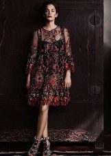 The second dress, many called the "space". Here, the truth is used and the form and colors, and texture, close to the elements of the cosmos - they read the flow of forms, the temperature difference. Stylish, closed shoes with a strap and unusual heels complete this spectacular look.
