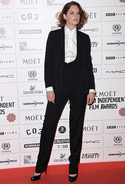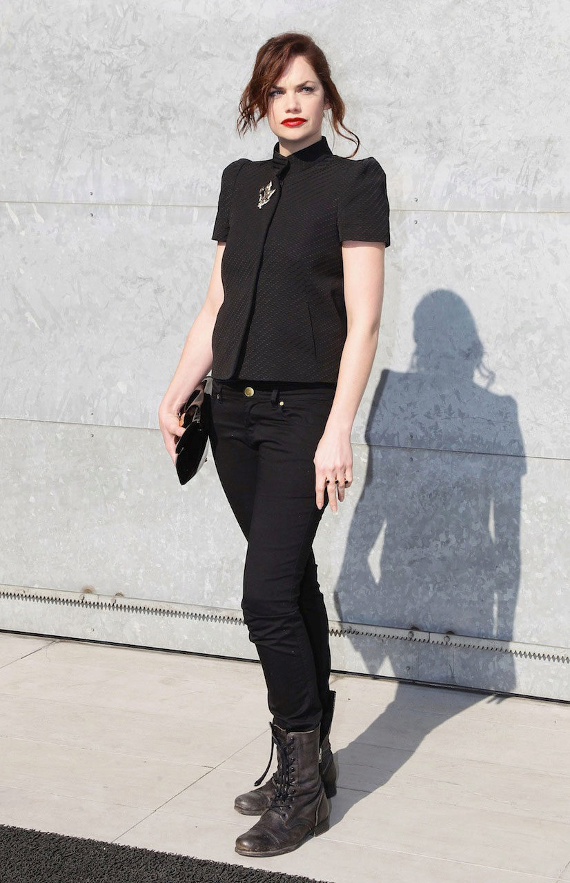 Many women of fashion should learn from Ruth Wilson and how to wear a coat. Consider one of the most gentle images. Here, as often happens in Ruth's outfits, the masculine and feminine again fight. The gruff, wide cuff and length of the coat to the calf stand up to a pleasant pale shade and soft fabric. As a result, the feminine in this image, no doubt, wins!