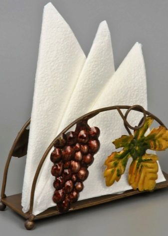 Porte-serviettes il y en a beaucoup. Tout le monde a sûrement vu une forme de l’ère soviétique appelée «feuille», où les serviettes sont empilées les unes sur les autres et se présentent sous la forme d’un cône. Dans la version moderne, ils peuvent être complètement différents, par exemple, comme un livre ou une danseuse.