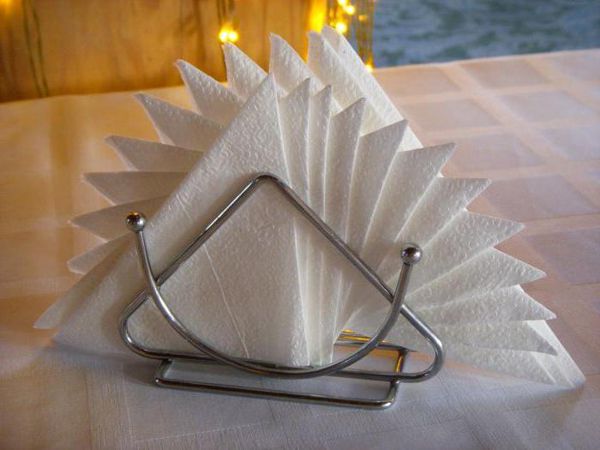 La plupart des porte-serviettes, trouvés dans la vie quotidienne, appartiennent à la catégorie des plats. Elles sont conçues pour un petit nombre de serviettes de table, mais en faisant preuve d'imagination et de dextérité, vous pouvez augmenter leur nombre, ce qui la rend plus esthétique à la fois. Il y a plusieurs façons de faire ceci: