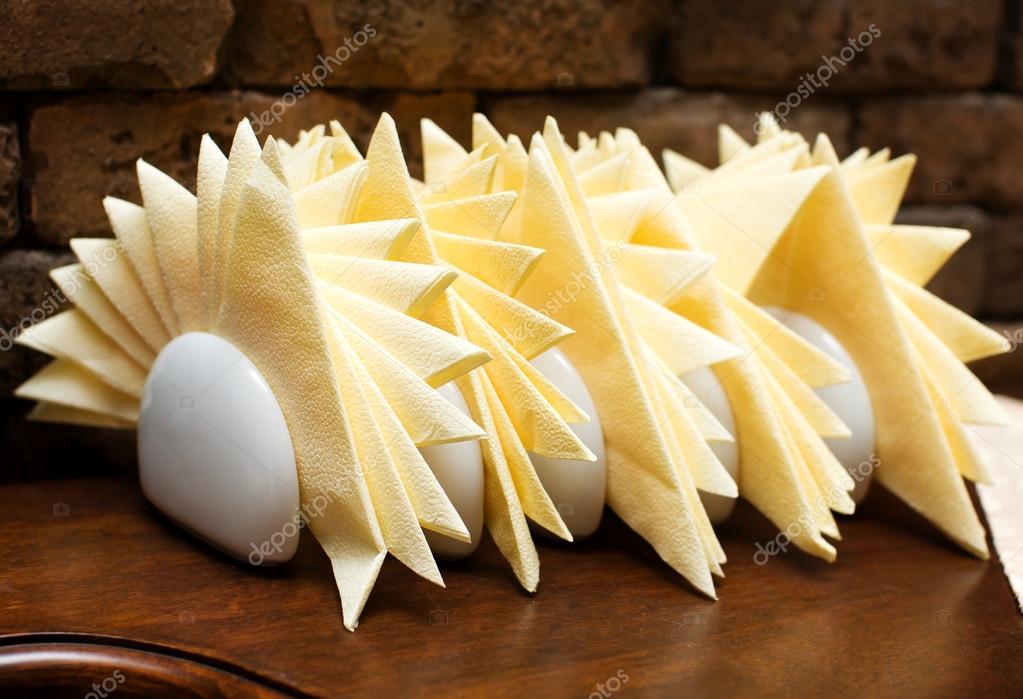 - Afin d'éviter les situations inconfortables, la capacité pour les serviettes de table doit être proche de la personne. Lors de leur installation, ils comptent généralement un exemplaire pour quatre personnes.