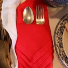Beaucoup sont attirés par la serviette en forme de flambeau. Pour essayer si joliment et de manière originale d’enrouler la coutellerie, il vous faut: