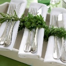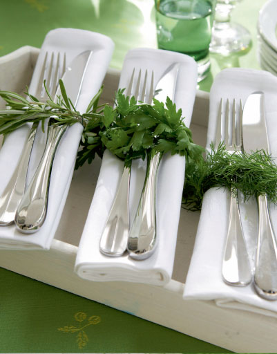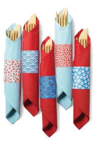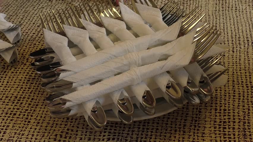 Souvent, des serviettes déjà décorées sont utilisées pour le restaurant afin que les serveurs puissent très rapidement décorer la table pour le nombre nécessaire de personnes. Les plats de service et les couverts attrayants sont toujours très populaires auprès des clients.