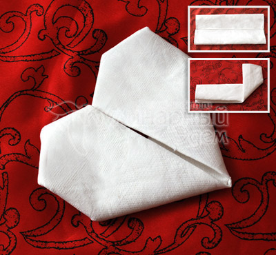 La serviette en forme de cœur est brillante et élégante. Pour créer un tel ornement, vous devez adhérer au schéma suivant: