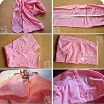 Rappelez-vous: quand vous cousez du tissu, il est préférable de plier en deux couches et de cacher les coutures à l'intérieur du bandage!
