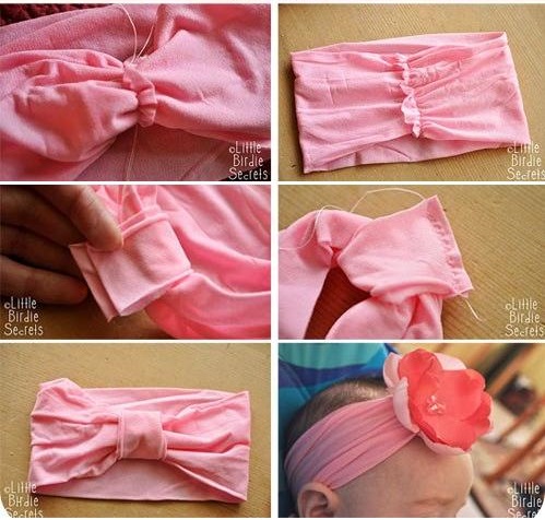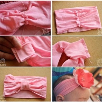 Une autre option consiste à coudre un bijou à partir d'un collant pour enfants Kapron. Ils sont assez élastiques et doux, et par conséquent, le bandage qui en est fait ne serre pas la petite tête. Il est cousu en utilisant la même technologie, mais dans ce cas, il est possible de couper un rectangle plus court de 1 à 2 cm.