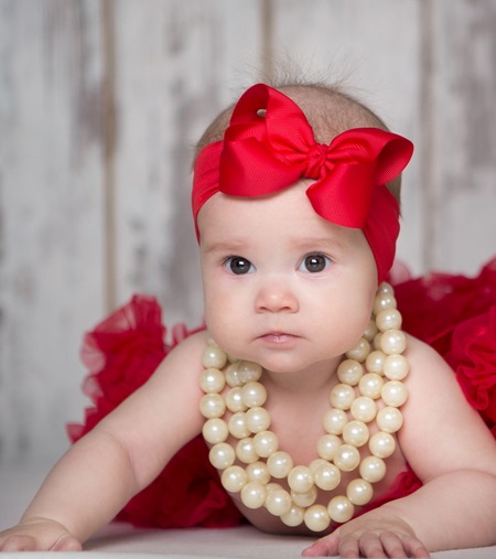 La vraie princesse fera une petite fashionista avec une couronne. Pour une séance photo thématique, un modèle en dentelle avec des fleurs en mousse ou en feutre, des papillons élégants et des baies conviendra également. Elle est le meilleur moyen de créer une image touchante de fille et aura fière allure dans les images. Un bandage avec un élément décoratif au centre accentuera facilement l’âge de toucher d’une petite dame, il aura l’air simple et en même temps mignon.