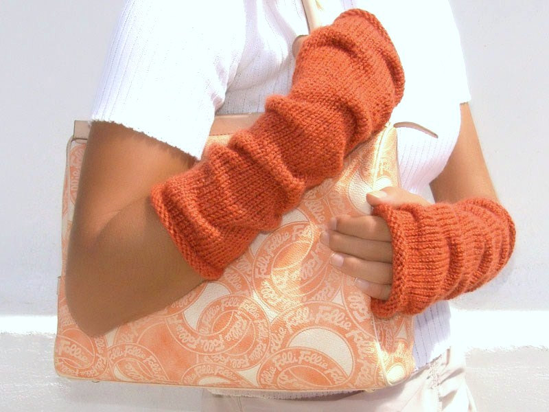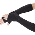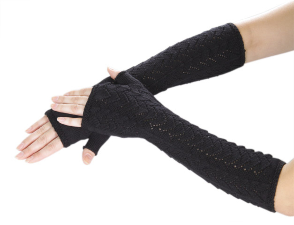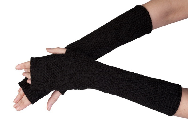 I guanti lunghi senza dita possono essere leggermente più alti del gomito, oppure possono chiudere completamente il braccio come una manica. In genere, i modelli di questa lunghezza vengono indossati durante la bassa stagione o in inverno. Pertanto, questi accessori sono solitamente lavorati a maglia e si abbinano perfettamente a gilet di pelliccia o di pelliccia, chiudendo completamente le mani. Sembra molto insolito accessorio a maglia di grandi dimensioni, leggermente arrotolato fino al gomito.