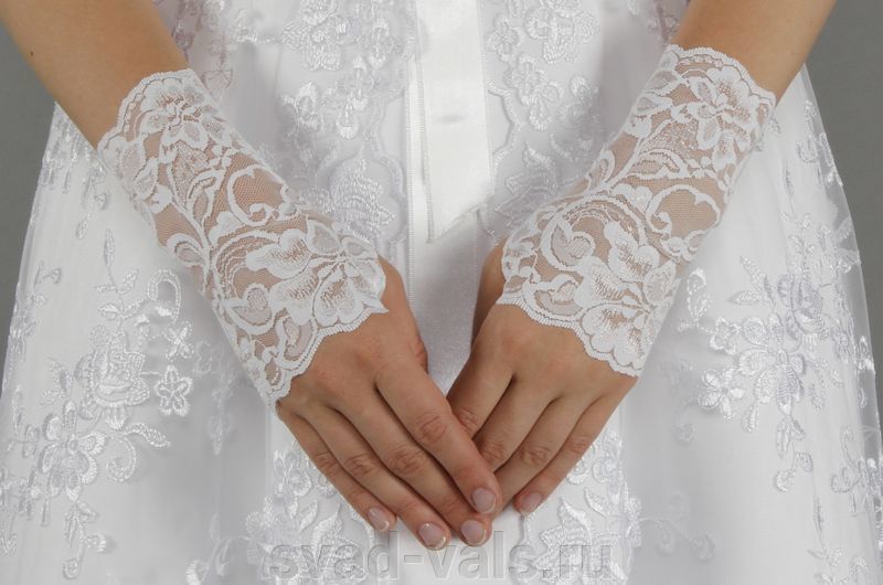 Guanti delicati e senza peso per il giorno più importante nella vita di ogni ragazza. I modelli openwork sono elegantemente attaccati a un dito e aggiungono solennità e femminilità all'immagine.