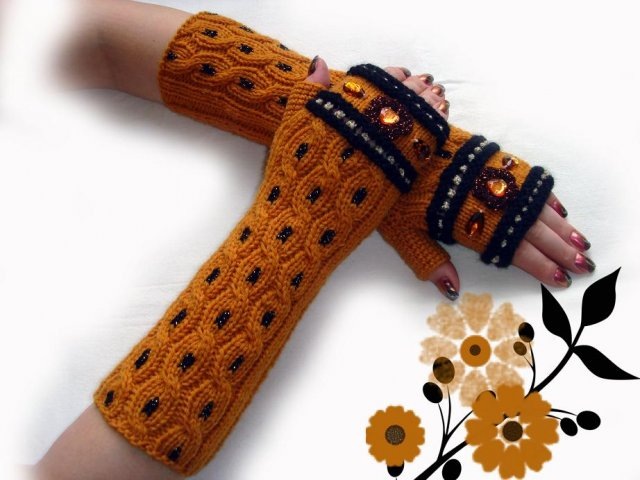 I guanti sono chiamati guanti senza dita. Ecco come questa parola è tradotta dal francese. Questo accessorio è progettato per scaldare le mani dal freddo e allo stesso tempo consente di controllarle in modo intelligente con le dita libere, senza rimuovere i guanti, cosa che è difficile fare con i normali guanti. Tuttavia, i guanti oggi servono più come elemento decorativo in aggiunta all'immagine femminile, e non come prima per il riscaldamento delle mani.