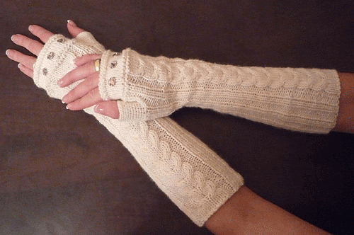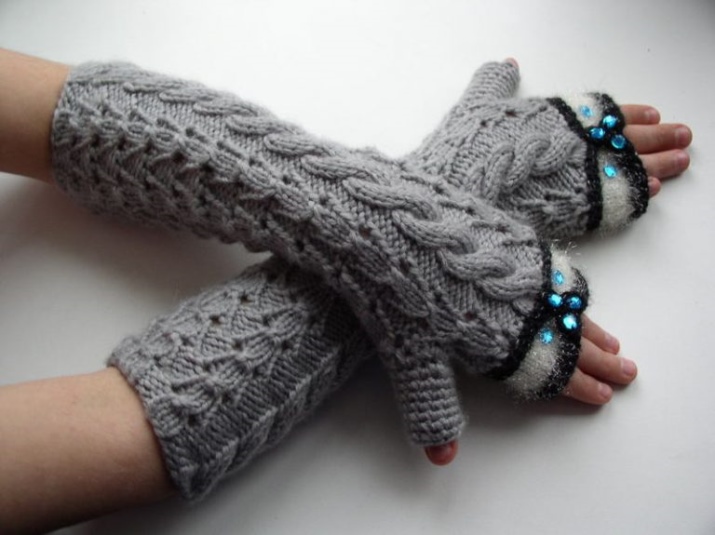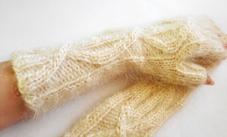 Il più caldo tra i guanti senza dita in maglia può essere chiamato modelli. I filati naturali a base di lanugine animale sono ipoallergenici e hanno la capacità di trattenere il calore con un'eccellente circolazione d'aria. Tali prodotti completeranno perfettamente qualsiasi look invernale, e nel complesso con altri accessori a maglia sarà un vero fiore all'occhiello di qualsiasi outfit.