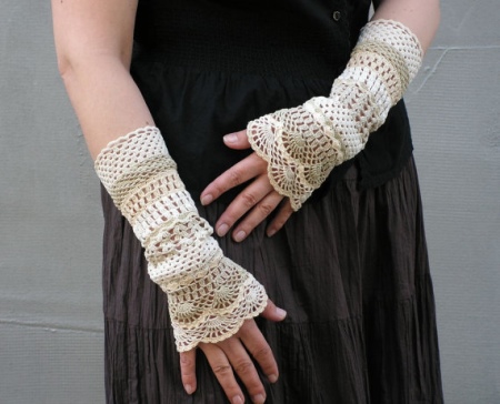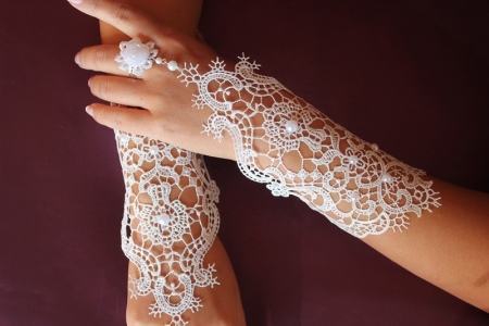 Guipure o guanti di pizzo sono un accessorio preferito per gli amanti dello stile vintage. Di solito, per creare tale immagine, vengono scelti modelli neri che sembrano interessanti e contrastano sulle mani.