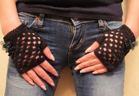 I più versatili sono i guanti neri senza dita. Oltre a creare immagini vintage o gotiche, i guanti di colore nero si adattano perfettamente allo stile casual e sono ben combinati con i jeans. I modelli openwork di colore classico saranno il complemento perfetto dell'immagine solenne.