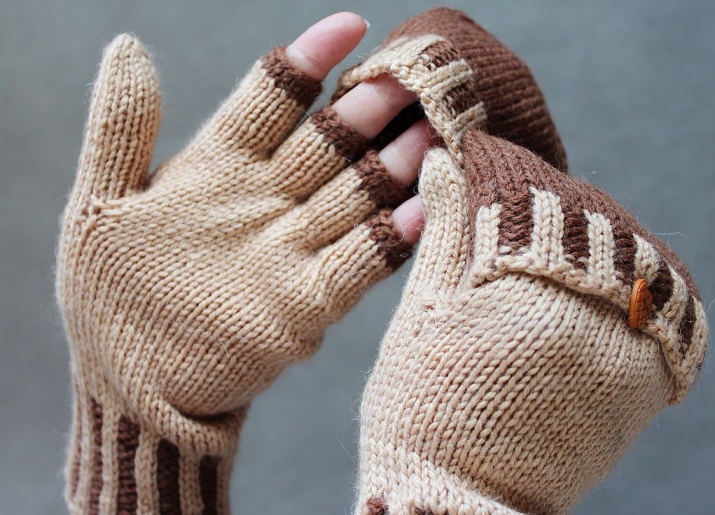 Gli amanti del calore e del comfort dovrebbero prestare attenzione ai guanti per trasformatori. Questo modello combina le funzioni di muffole e guanti. Se necessario, la parte di chiusura delle dita superiori, che di solito è fissata con un pulsante, può essere ripiegata e aperta. I più comuni modelli a maglia di trasformatori, ci sono anche esempi di maglieria.