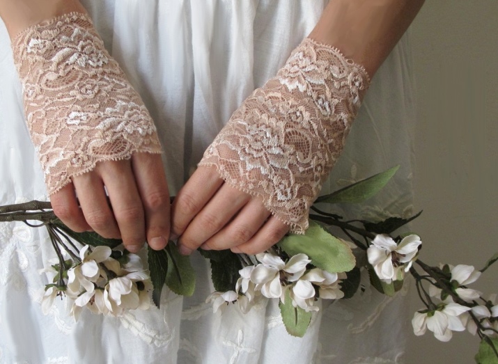 Le spose per creare un'immagine di matrimonio scelgono solitamente modelli di pizzo e guipure. L'intreccio intricato e la struttura senza peso di questi guanti sottolineano la femminilità e la raffinatezza della natura giovane, contribuendo a creare un'immagine originale, romantica e allo stesso tempo solenne.