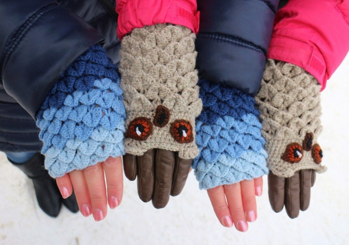 I più popolari guanti in maglia di cotone o di filato acrilico aiutano non solo a riscaldarsi con tempo fresco, ma anche perfettamente traspiranti e permettono anche alla pelle delle mani di respirare. Gli accessori a maglia possono essere decorati con i modelli più diversi e fantasiosi, il che li rende dettagli molto originali e vivaci in qualsiasi immagine femminile. Le filettature correttamente selezionate non causano irritazioni e sono piacevoli al tatto, ma a causa dell'elasticità il modello si adatta bene alla mano e non causa disagio.