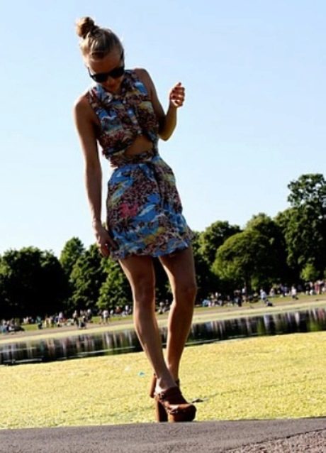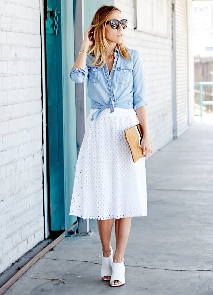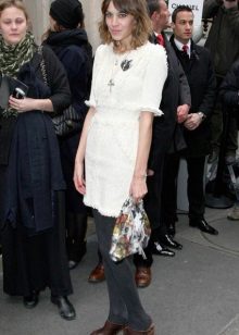 Con il naso chiuso sul tallone. Colore o luce su un tacco basso o medio in forma sotto l'abito con elementi di stile etnico, nero e marrone con finiture ruvide - con abiti in stile militare o safari. Anche queste scarpe di legno con i pantaloncini sono buone. Tuttavia, queste immagini non dovrebbero essere provate da ragazze basse, perché il sabot di un aspetto brutale rende ogni gamba più pesante. È molto più appropriato scegliere un look simile per una ragazza snella.