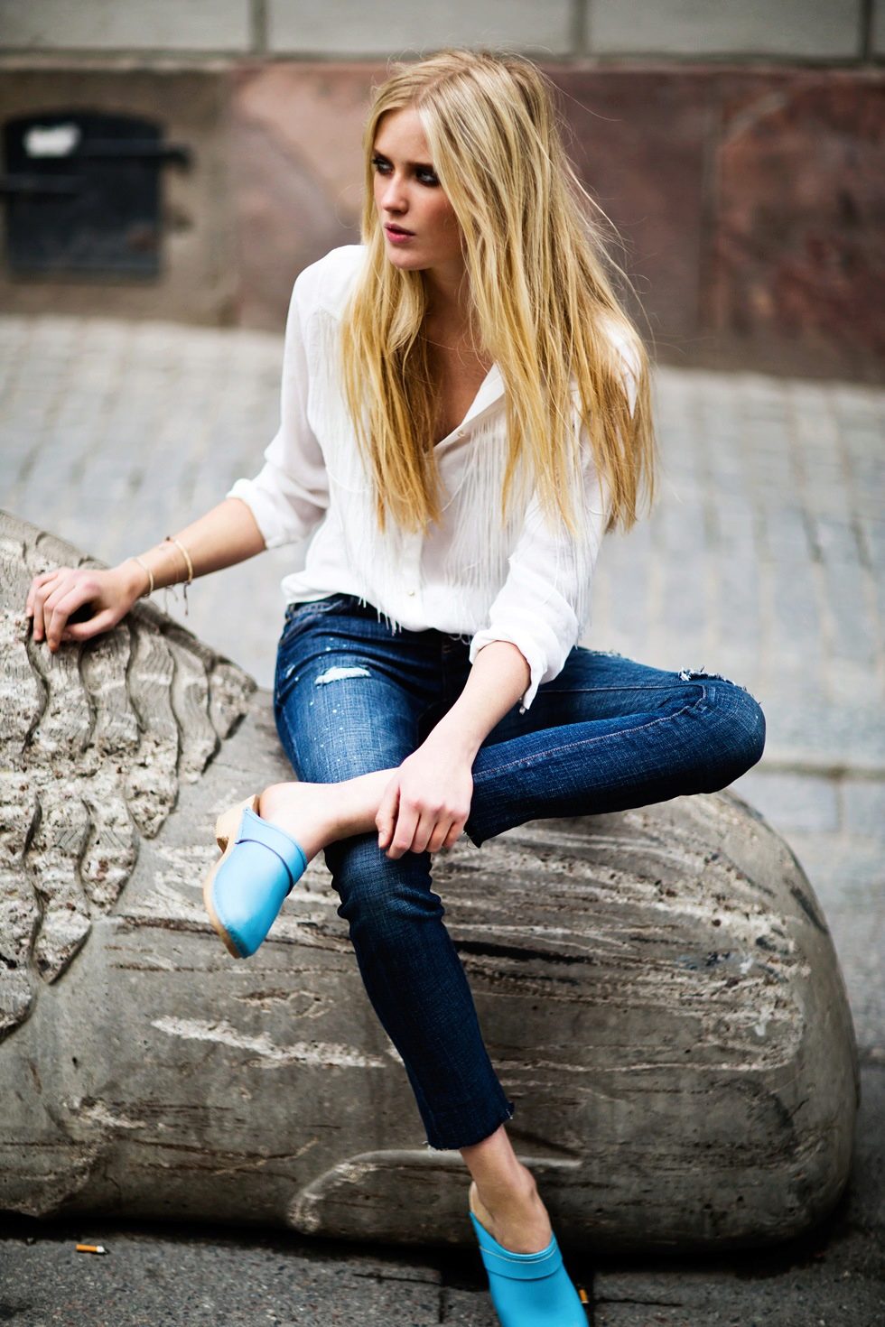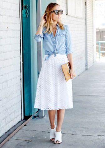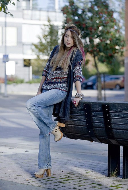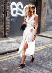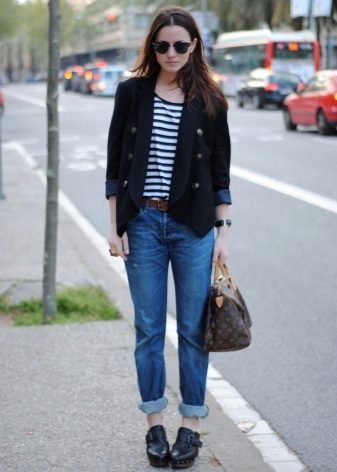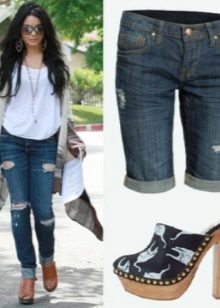 Win-win è indossare gli zoccoli con le cose boho e hippie. Jeans strappati, una gonna multicolore, una semplice T-shirt e una giacca corta in pelle o denim, baubles e gioielli enormi sono creati per queste scarpe. Inoltre, un ottimo kit può essere creato con abiti in chiffon a gas, gonne. Eccellente sabot amico e con pantaloni femminili, aderenti o svasati.